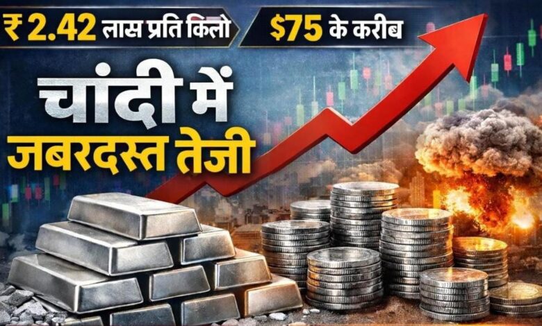 ग्लोबल मार्केट में भी चांदी में मजबूत तेजी देखने को मिली। अंतरराष्ट्रीय बाजार में चांदी की कीमतों में 5% से ज्यादा का उछाल दर्ज किया गया है। COMEX पर चांदी $75 प्रति औंस के करीब पहुंच गई है, जो अपने ऑल-टाइम हाई से करीब $7 नीचे है।