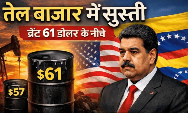 Mumbai: कच्चे तेल की कीमतें लगातार तीसरे दिन भी दायरे में कारोबार करती नजर आईं। US-वेनेजुएला के बीच बढ़े तनाव के बावजूद अंतरराष्ट्रीय बाजार में तेल की कीमतों पर कोई बड़ा असर नहीं दिखा। ब्रेंट क्रूड में हल्की कमजोरी दर्ज की गई और यह $61 प्रति बैरल से नीचे फिसल गया। वहीं WTI क्रूड $57 प्रति बैरल के करीब कारोबार करता रहा।